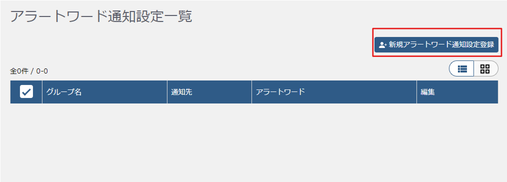 2. 「新規アラートワード通知設定登録」をクリック