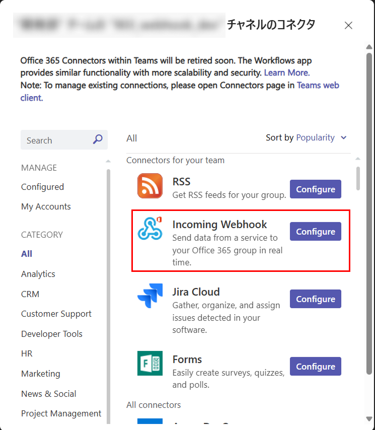 Microsoft TeamsのWebhook設定