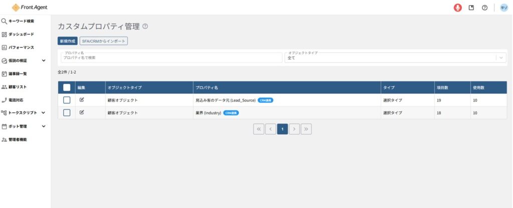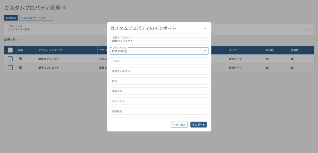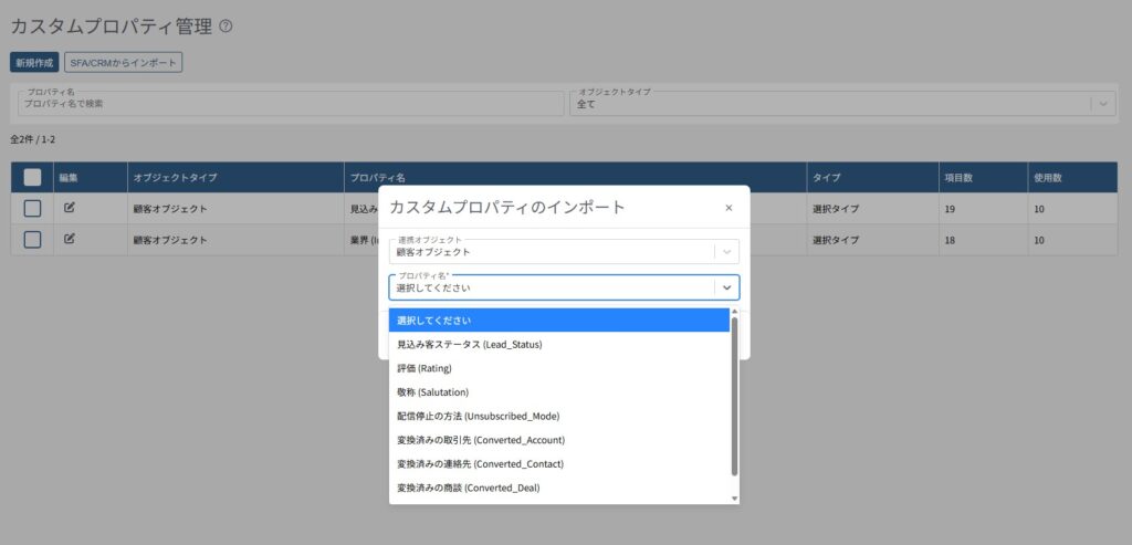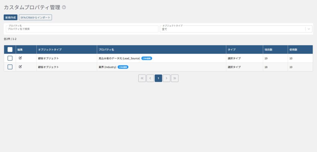インポートしたカスタムプロパティには「CRM連携」のタグが表示されます。