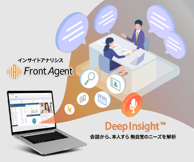 Front Agentは、会話を録音するだけで顧客の見えない本音を可視化し、組織を変革するインサイトアナリシス™です。見えない本音から勝ち筋を導き出す特許技術、Deep Insight Engine™*を搭載しています。