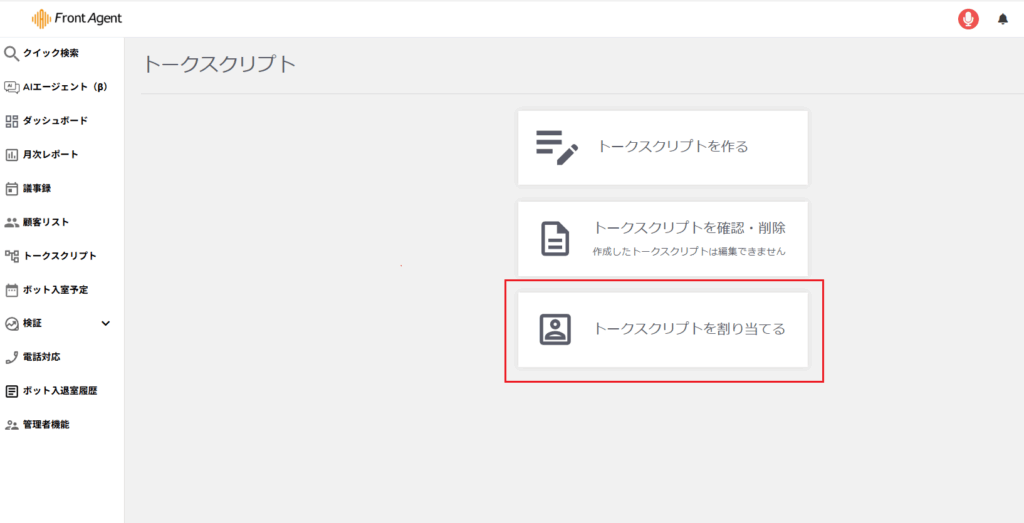 サイドメニュー トークスクリプト > 管理 >トークスクリプトを割り当てるをクリック