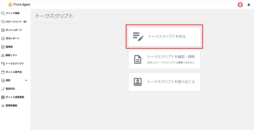 トークスクリプトの作成には管理者・マネージャーの権限が必要です。
