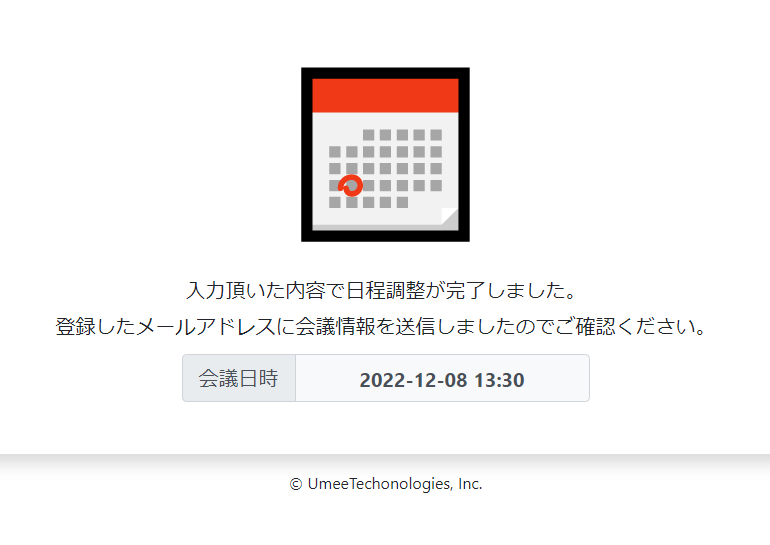 設定完了後、「確認」をクリックしてエラーがなければ、日程調整URLが発行した画面が表示されます。このURLを会議参加者にご連絡下さい。