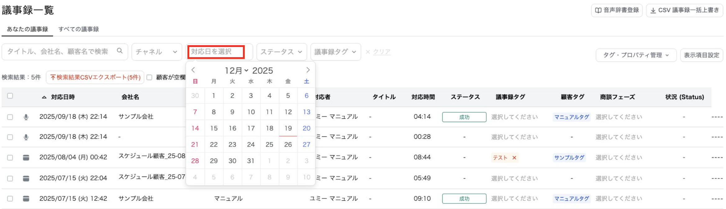 3. 日付をクリックすると、該当日の議事録一覧が表示されます。