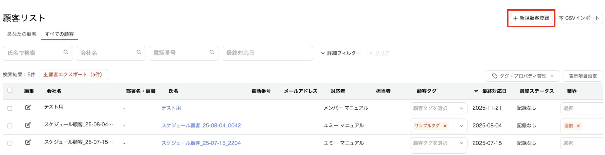 顧客リストの「新規顧客登録」から顧客の登録を行います。