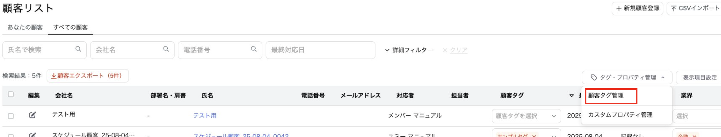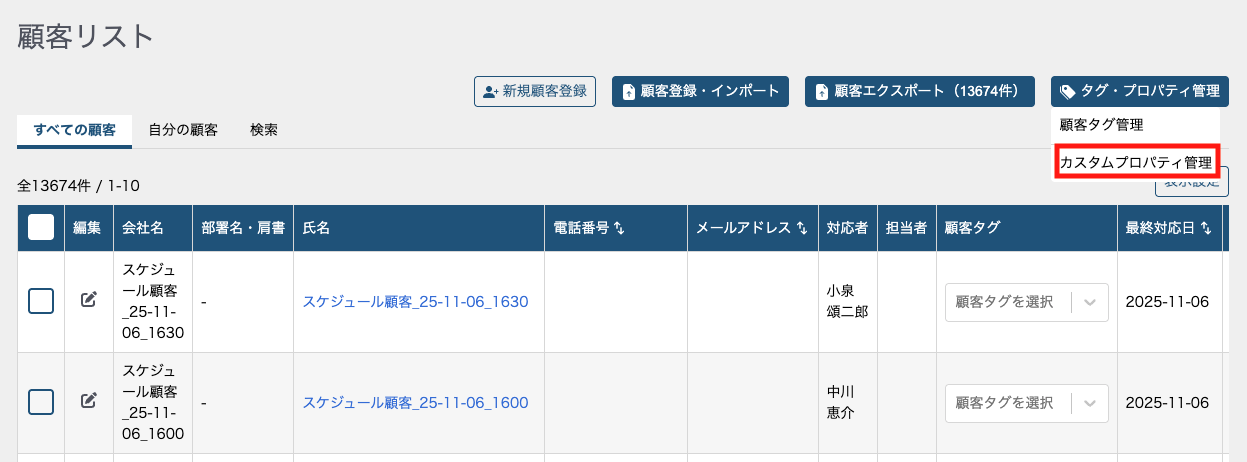 顧客タグや顧客オブジェクトのプロパティを管理することができます。