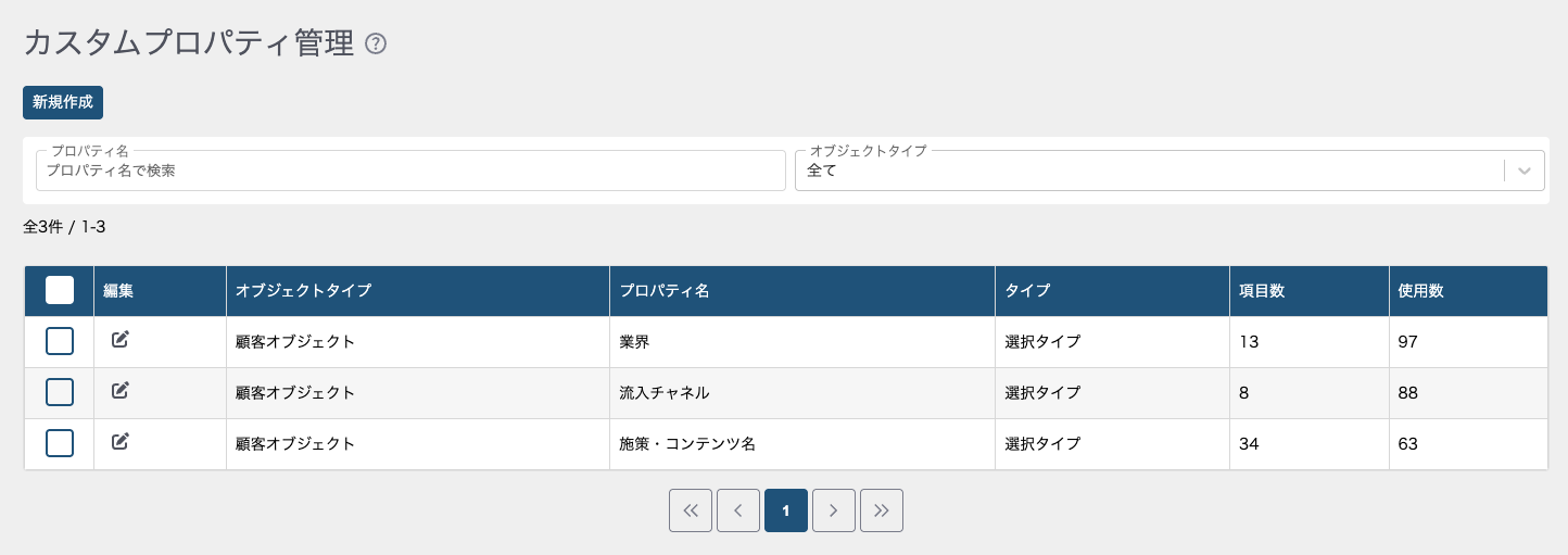 新しいタブで「カスタムプロパティ管理」が開きます。