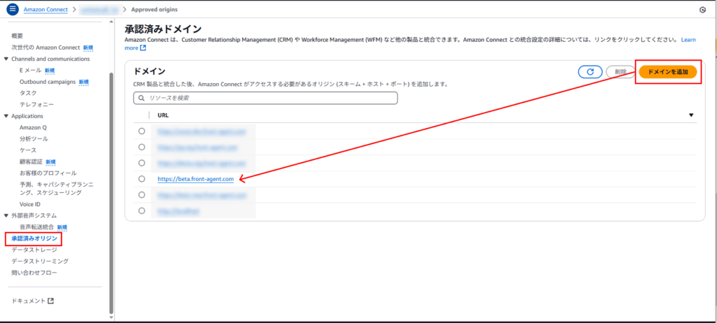 Amazon ConnectでFront AgentのURLを登録