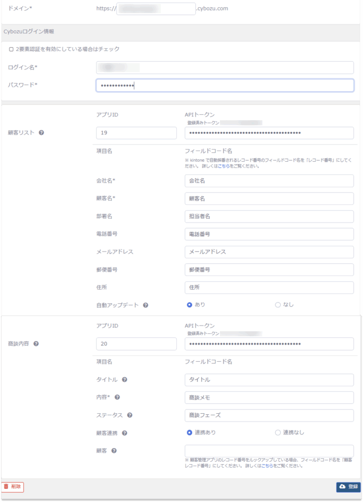 * kintone側で2段階認証を有効にすると、連携ができません。(kintone側の仕様)