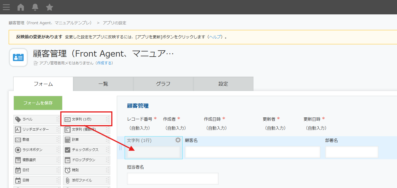 4. フォームから「文字列(1行)」をドラッグ&ドロップで配置する