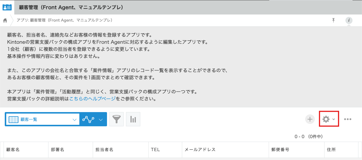 * kintoneで”顧客名”または”会社名”が登録された顧客情報のみをFront Agentの顧客として作成または更新します。