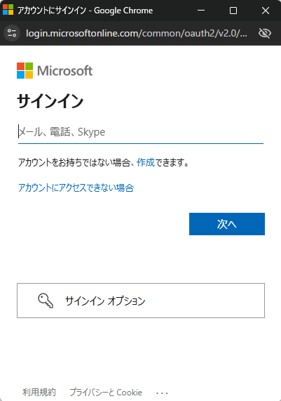 その後、連携させたいMicrosoftのアカウントでサインインのプロセスを進めてください。