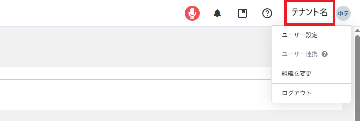 切り替えたいテナントを選択してテナントの切り替え完了です。