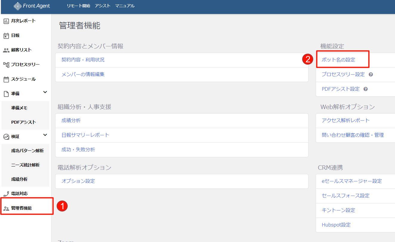 管理者は、Web会議に出席する、Front Agent社内ユーザーのボットの名前を、一括変更することができます。